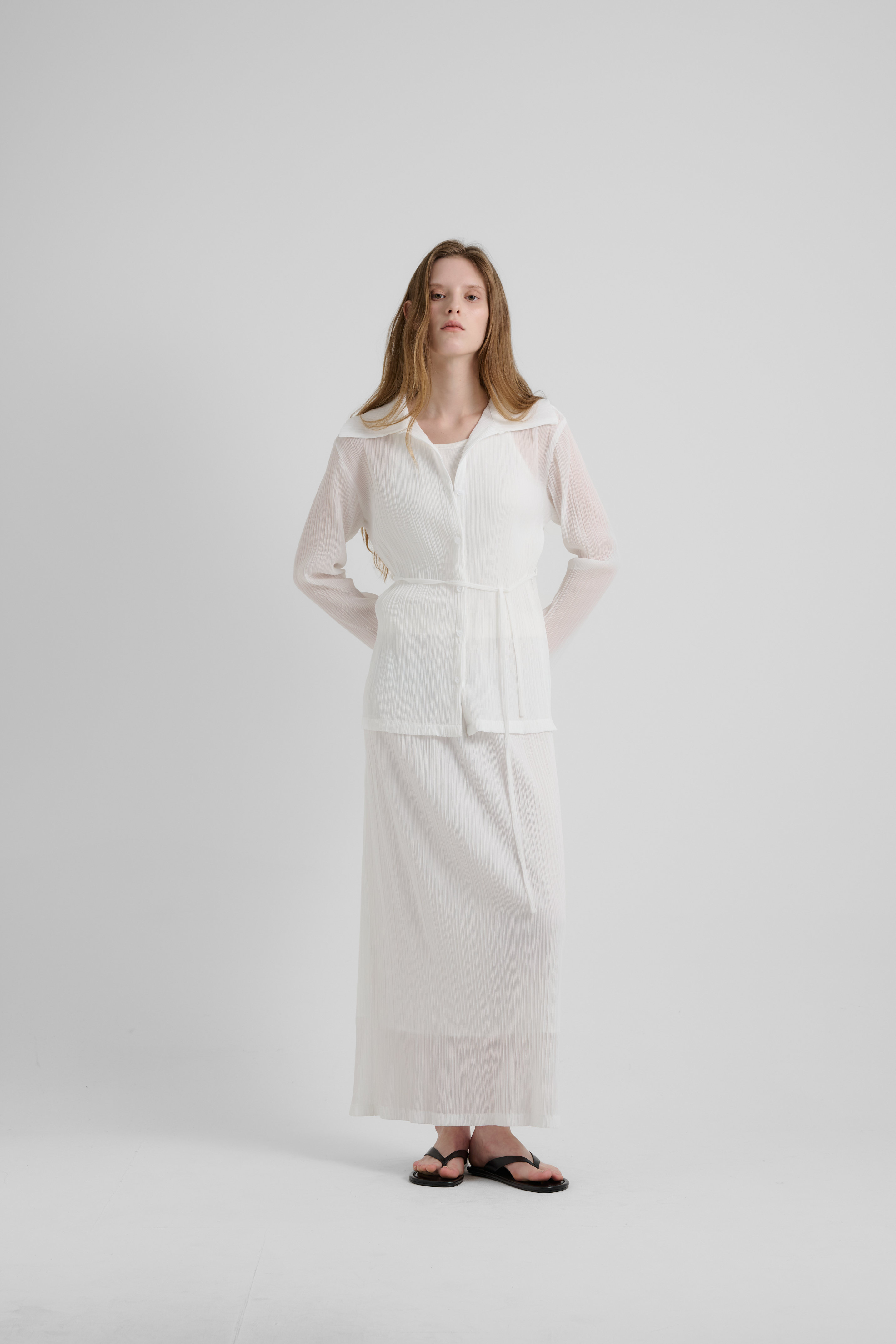 LU PLEATS SHIRT CARDIGAN -WHITE