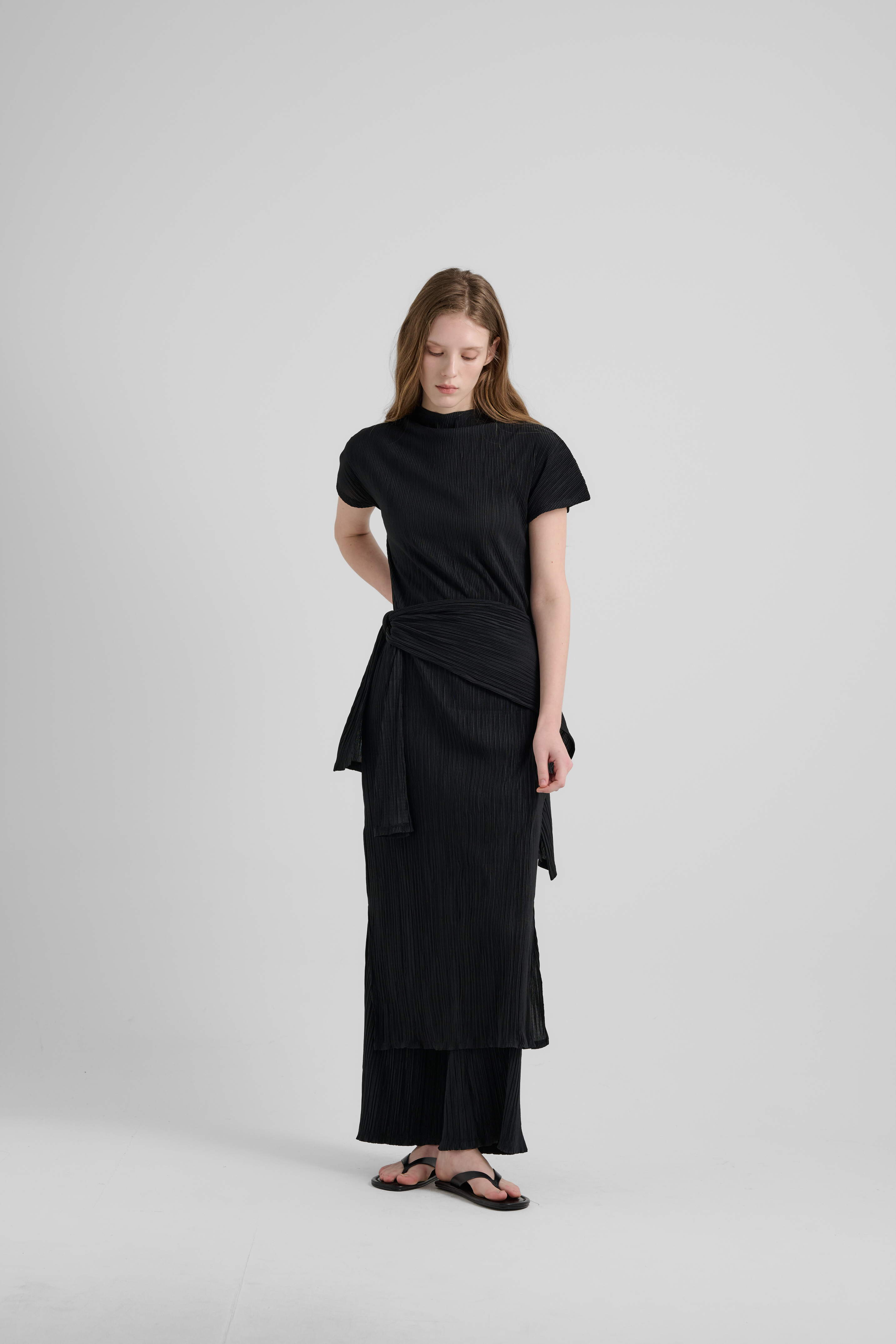 MUFFLER PLEATS DRESS- BLACK