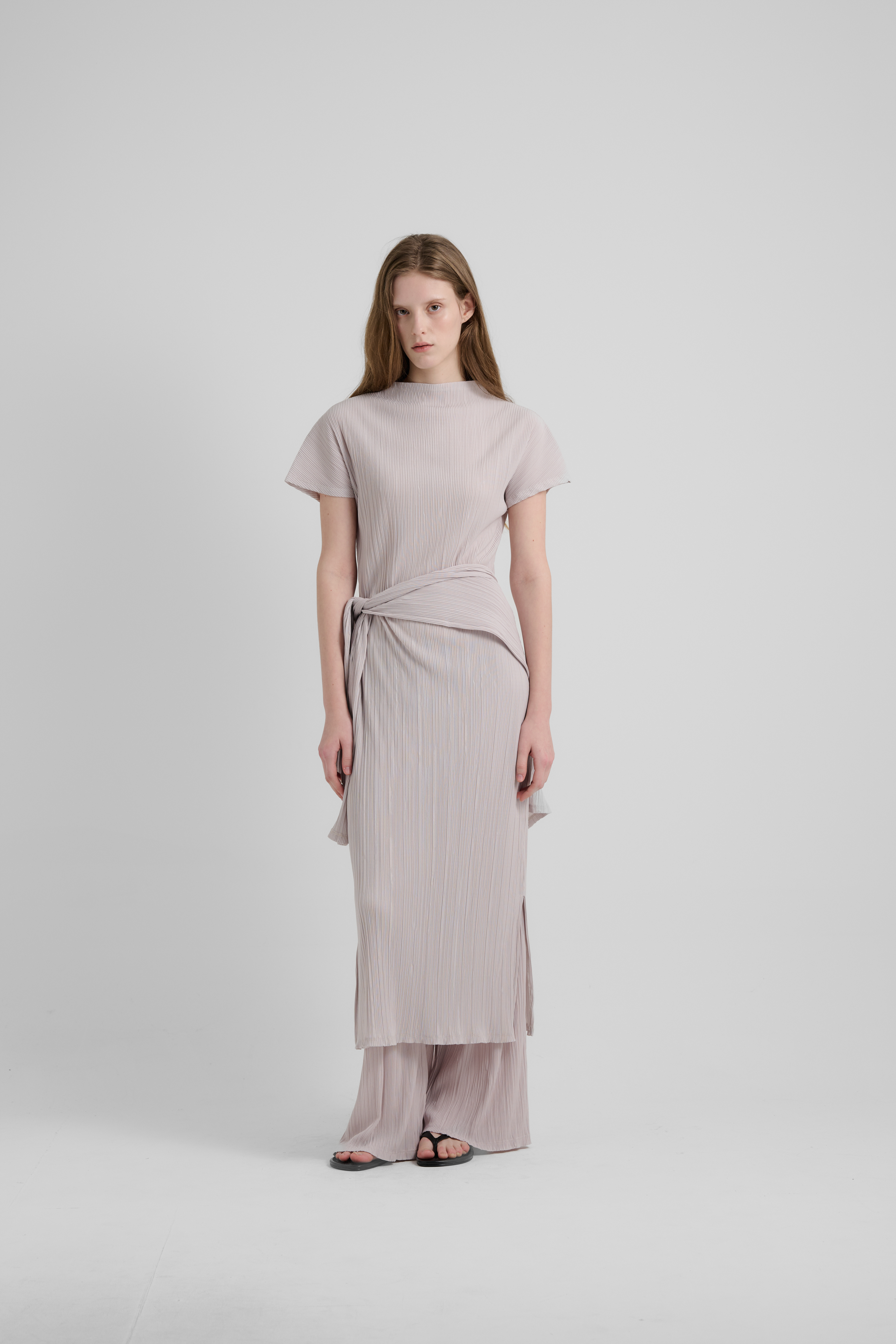 자연스럽게 흐르는 플리츠가 편안한 멋과 슬림해 보이게 해주는핏감의 원피스입니다. 몸에 닿는 촉감은 가볍고 유연하며, 여유로운 핏과 플리츠의 세로 흐름이 체형을 부드럽게 감싸면서 시원한 착용감을 선사합니다. 세트로 구성된 동일 소재의 머플러는 스타일에 따라 자유롭게 연출 가능하며, 목에 가볍게 걸치거나 허리에 감아 실루엣에 포인트를 줄 수 있어 다양한 무드의 연출이 가능합니다.허리에 묶어 연출하면 자연스럽게 라인을 잡아주며 체형 커버 효과는 물론, 또 다른 스타일로 변화를 줄 수 있습니다. 사이드에는 은은한 트임 디테일이 더해져 활동 시 한층 더 편안함을 느낄 수 있으며, 움직임에 따라 자연스럽게 흩날리는 실루엣이 멋스러운 분위기를 완성합니다.