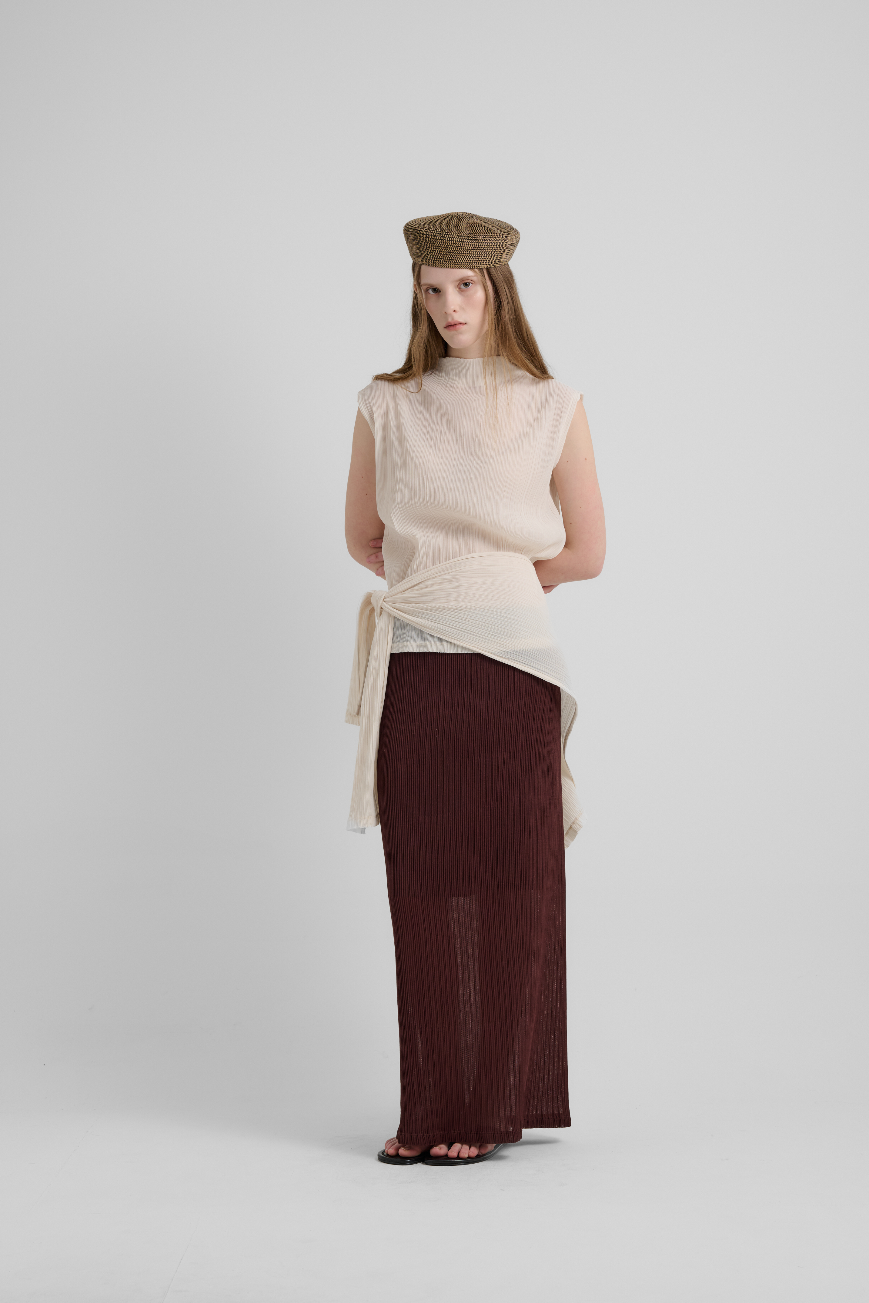 루미노어의 시그니처 플리츠를간결한 슬리브리스 탑에 담아낸 아이템입니다.