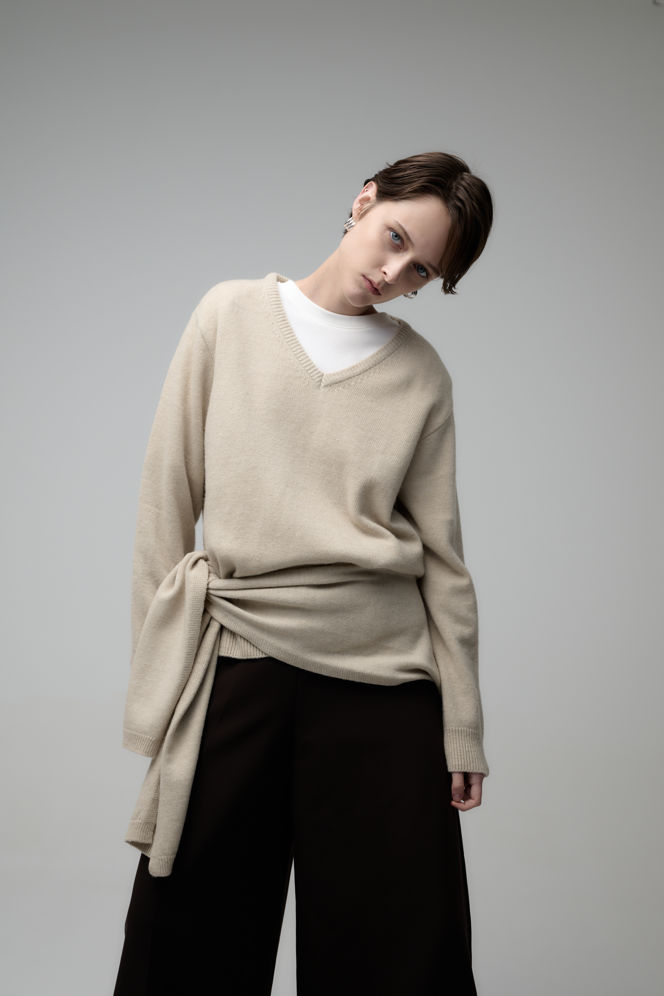 MUFFLER SET V-NECK SWEATER -4COLOR
