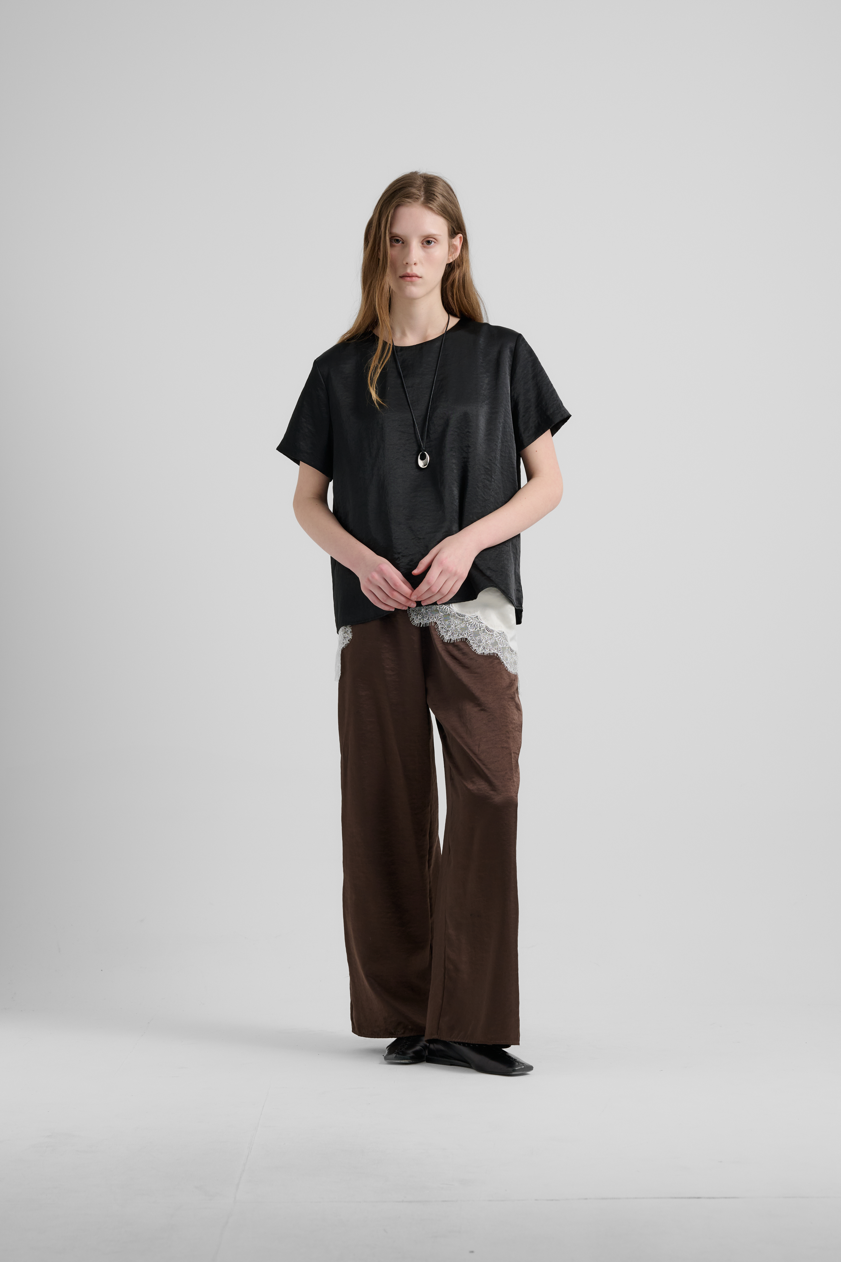 루미노어 사틴 블랙 반팔 블라우스는 은은한 광택이 감도는 고급스러운 사틴 원단과 세련된 디자인이 돋보이는 아이템입니다. 부드럽게 흐르는 실루엣과 실키한 촉감이 편안한 착용감을 제공하며, 뒷트임 디테일이 더해져 뒷모습까지 우아하게 연출됩니다. 또한 뒷넥 트임에 골드 포인트 단추가 세련된 마무리를 더해 포멀한 자리뿐만 아니라 일상 속에서도 특별한 분위기를 연출할 수 있습니다. 심플한 데님과 매치해도 세련된 감각이 돋보이며, 기본적인 팬츠나 스커트와 함께하면 손쉽게 우아한 스타일을 완성할 수 있는 아이템입니다.