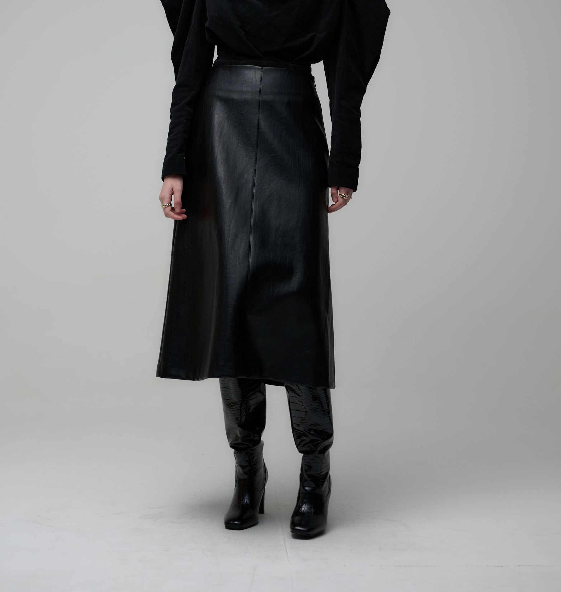 REFINED LEATHER SKIRTS-BLACK