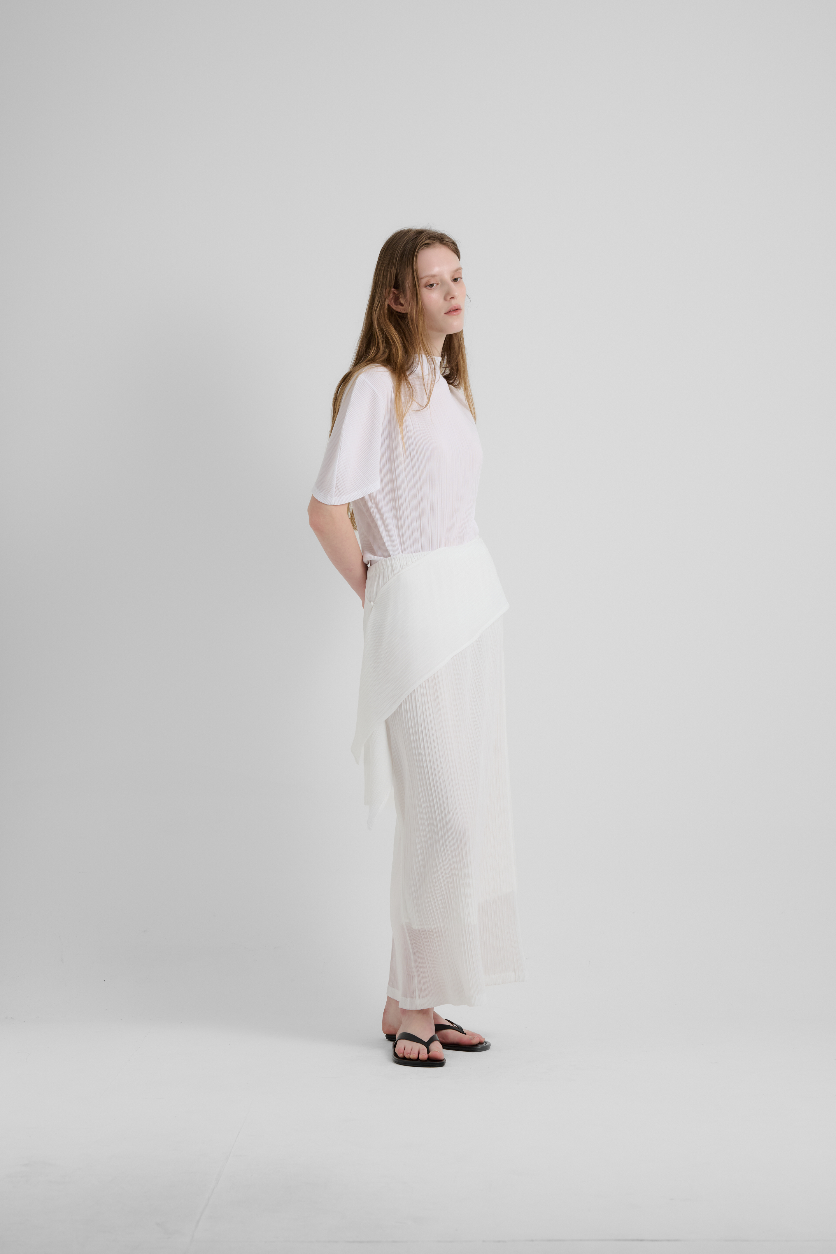 LU WRAP LAYERED PLEATS LONG SKIRT –WHITE