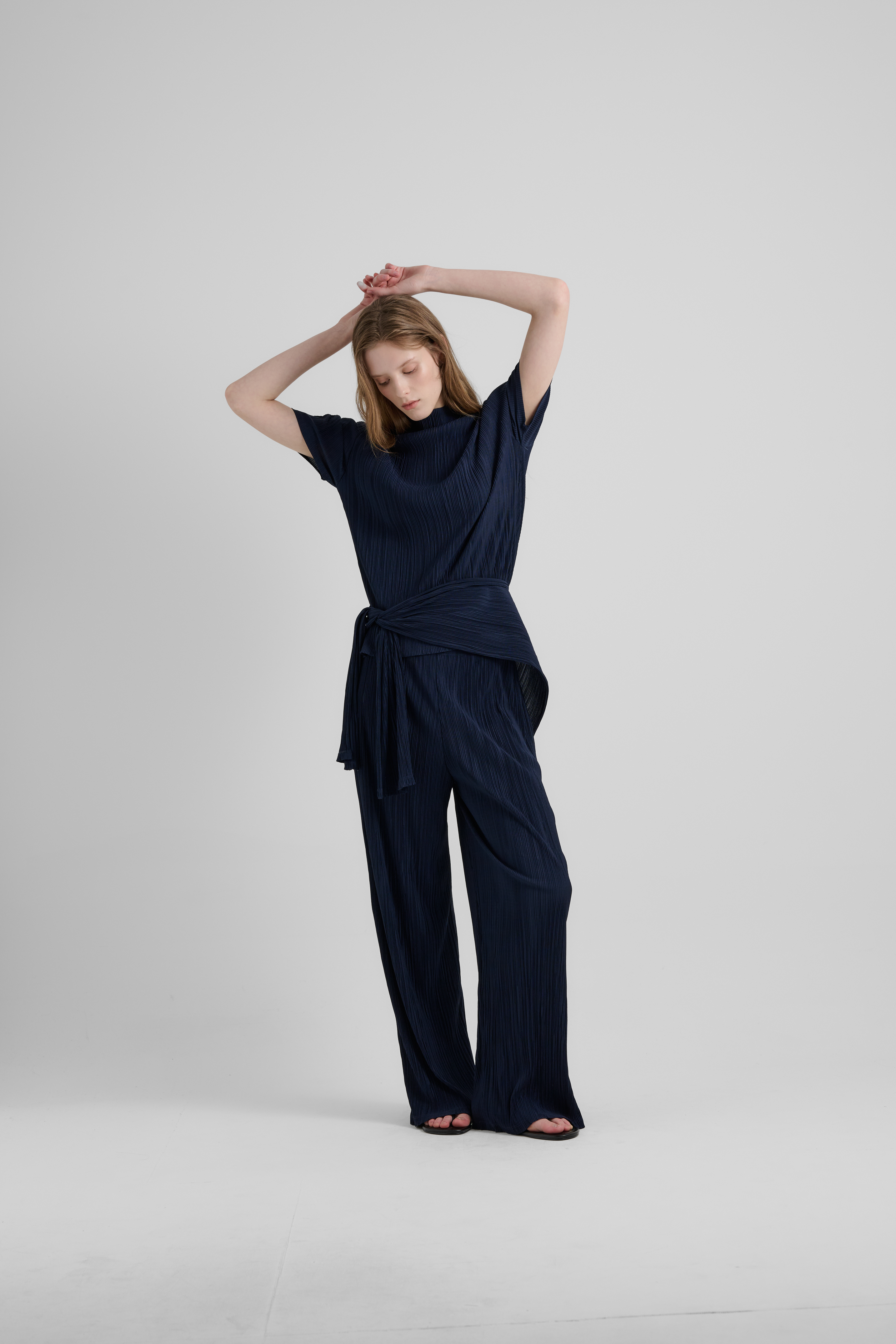고급스러운 플리츠 디테일과 편안한 착용감이 돋보이는 플리츠 밴드 와이드 팬츠입니다. 은은한 광택이 감도는 플리츠 원단이 자연스럽게 흐르는 실루엣을 연출해 우아한 분위기를 완성해 줍니다. 가볍고 유연한 원단으로 장시간 착용해도 편안하며, 구김이 적어 하루 종일 깔끔 하면서도 편안한 핏을 유지할 수 있습니다. 세트인 플리츠탑과 플리츠 가디건아이템과 함께 착용하면 더욱 세련된 무드를 연출할 수 있으며, 단독으로도 다양한 스타일링이 가능합니다.