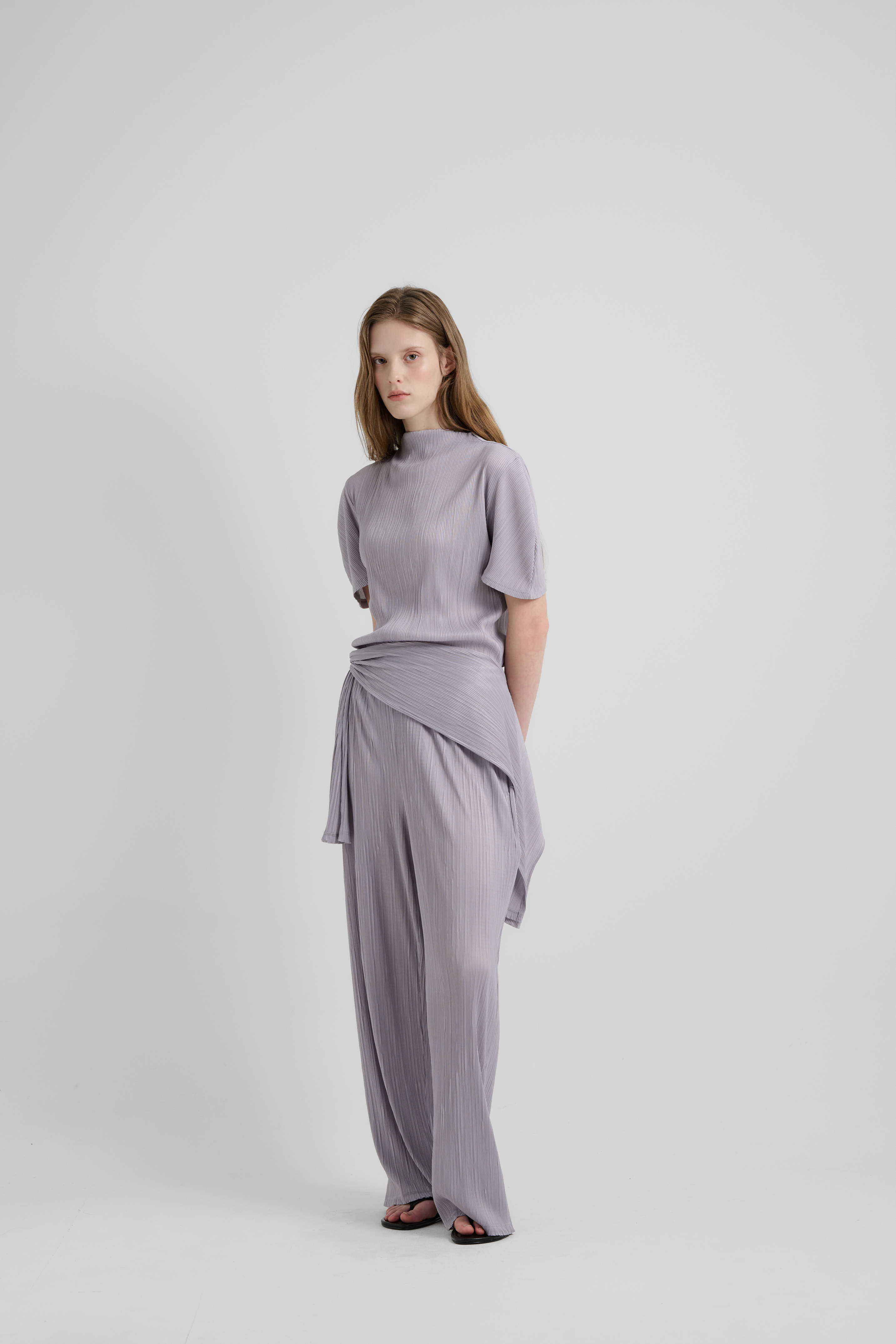 (NEW) MUFFLER PLEATS TOP - GRAY